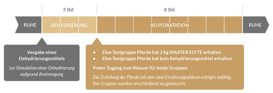 | Dank dem Futtermittel Master Elyte haben die Pferde in den acht Stunden Rehydrierungsdauer etwa 10 Liter Wasser mehr getrunken. |